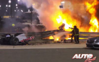 Así pues, algo grave estaba ocurriendo en esta ocasión en el circuito de Sakhir, casi insólito en este tiempo de calculadas seguridades, porque lo cierto es que el Haas-Ferrari VF-20 de Romain Grosjean, lanzado también a más de 220 km/h tras tocarse con Daniil Kvyat (AlphaTauri), se había incrustado con 53 Gs de violencia entre las defensas de la curva 3 del trazado y aquel guarda raíl, cortado como corta el cuchillo la mantequilla, tenía atrapado entre las llamas a un hombre joven, 34 años, que de no ser por el “Halo” hoy no podría contarlo, controvertido elemento de seguridad con el que el propio piloto francés, director de la Asociación de Pilotos de Gran Premio (“GPDA”), fuera muy reticente en su implantación en 2018.