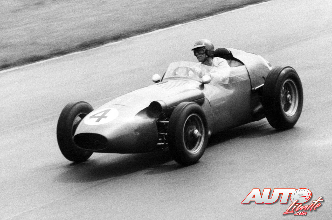 Carroll Shelby, al volante del Aston Martin DBR4 F1, durante el GP de Gran Bretaña 1959, disputado en el circuito de Aintree.