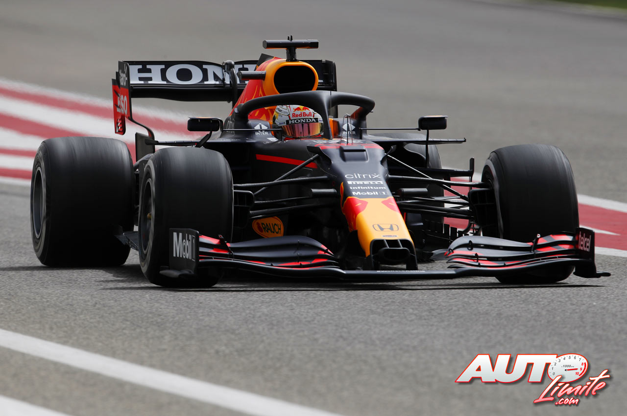 Max Verstappen, al volante del Red Bull-Honda RB16B, durante los test de pretemporada realizados en el Circuito Sakhir de Barhéin.