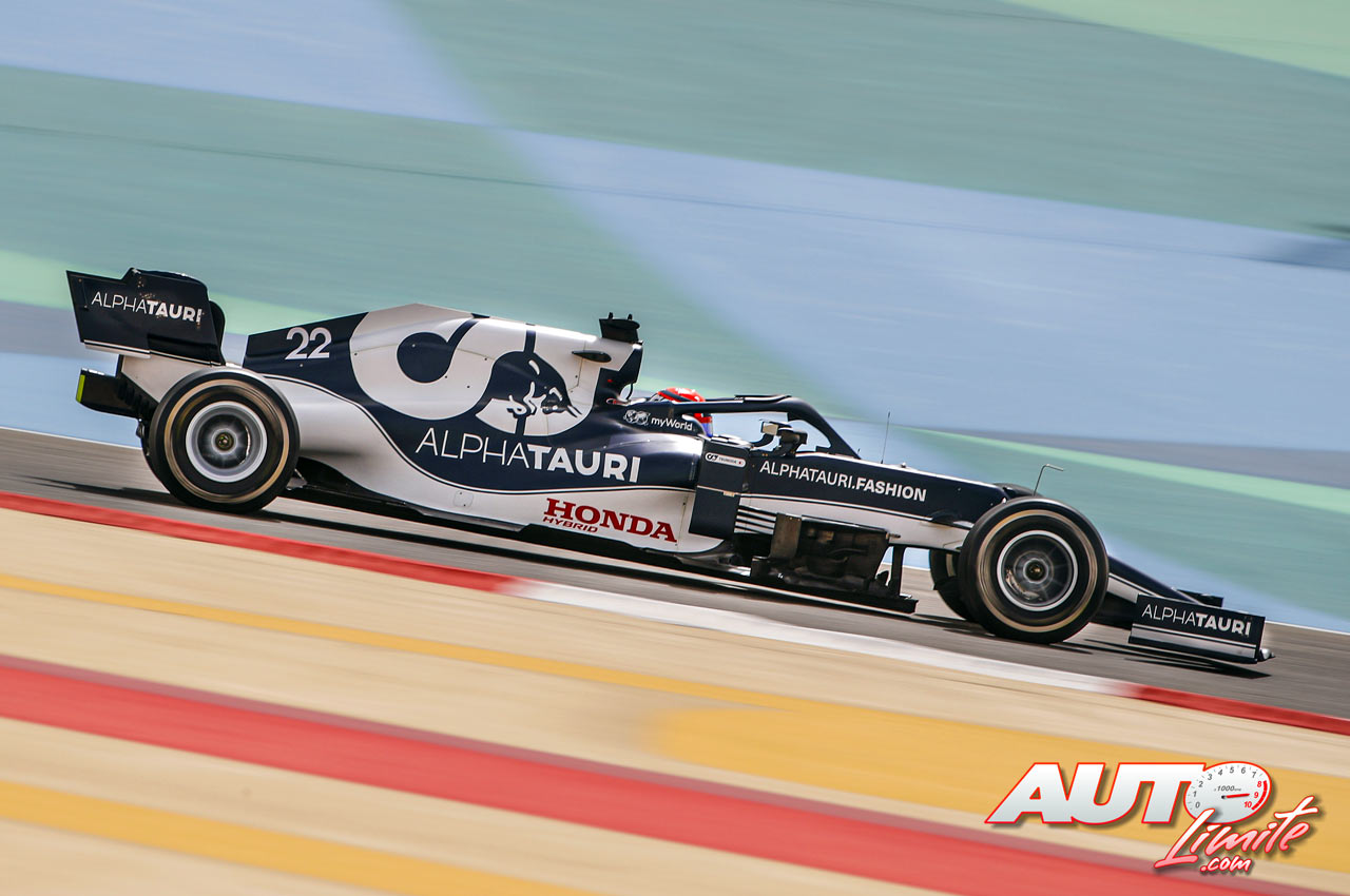 Yuki Tsunoda, al volante del AlphaTauri-Honda AT02, durante los test de pretemporada realizados en el Circuito Sakhir de Barhéin.