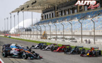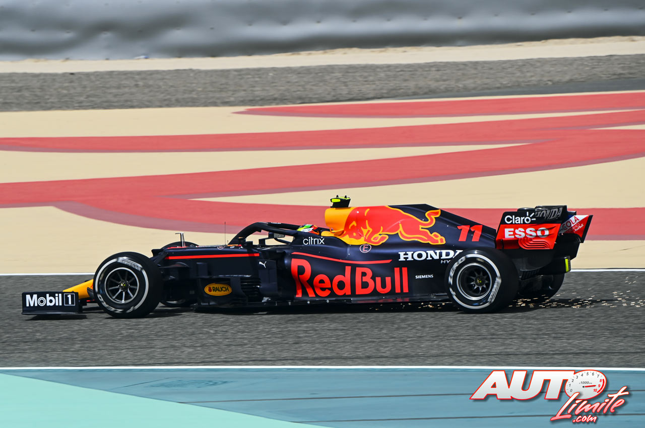 Sergio Pérez, al volante del Red Bull-Honda RB16B, durante los test de pretemporada realizados en el Circuito Sakhir de Barhéin.