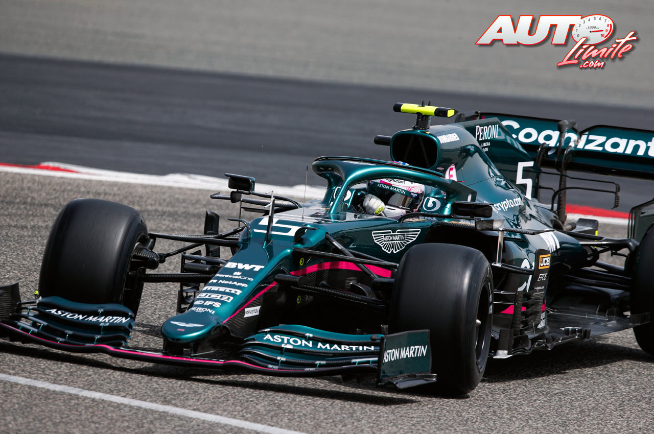 Sebastian Vettel, al volante del Aston Martin-Mercedes AMR21, durante los test de pretemporada realizados en el Circuito Sakhir de Barhéin.