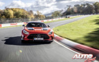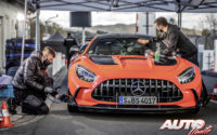 Con un espectacular color naranja “AMG Magnabeam”, neumáticos Michelin Pilot Sport Cup 2 R MO tipo “semi-slick” (los mismos que lleva de serie) de compuesto blando (opcionalmente se ofrecen dos compuestos diferentes para este deportivo) y el paquete “AMG Track Package” incluido (jaula antivuelco de titanio, asientos bacquet de fibra de carbono y cinturones de seguridad de arnés con cuatro puntos de fijación), el Mercedes-AMG GT Black Series pilotado por Maro Engel entraba en pista a las 17:02 horas del 4 de Noviembre 2020, comenzando a correr el tiempo a su paso por las células de cronometraje (aguantaban hasta última hora de la tarde para que se secara al máximo el asfalto húmedo).