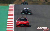 En este duelo de estrategias (todos a una única parada), Verstappen (Red Bull) lanzaba también un “undercut” sobre Bottas (Mercedes) en la vuelta 35 y le arrebataba la segunda posición solo una vuelta después (cuando Bottas volvía a pista tras su parada en “pit lane”), pero sería incapaz de alcanzar a un Hamilton (Mercedes) que marcaba un ritmo inalcanzable.
