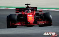 El piloto español era uno de los pocos que había tenido que comenzar la carrera con neumáticos de compuesto “blando” (las simulaciones mostraban una mayor competitividad arrancando con compuesto “medio”) y era el primero en entrar en “pit lane” para cambiar gomas (todos los “pit stops”), intentando una maniobra de “undercut” sobre Lando Norris (McLaren), aunque la táctica de la Scuderia no daría sus frutos y condicionaría negativamente al madrileño el resto de la carrera.