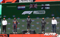 De esta manera, Lewis Hamilton (Mercedes) corría sin oposición hasta su victoria número 97, mientras Max Verstappen (Red Bull) y Valtteri Bottas (Mercedes) le acompañaban en el podio, protagonizando los dos últimos una disputa particular por marcar la vuelta rápida en carrera (ambos entraron una segunda vez en las últimas vueltas para montar neumáticos “blandos”), siendo Bottas quien sumaría el punto adicional (una vez más, a Verstappen le anulaban la vuelta rápida marcada en el último giro por rebasar los límites de pista).