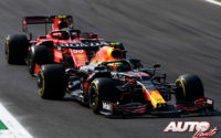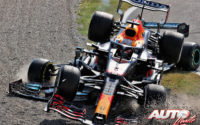 Por detrás, Antonio Giovinazzi (Alfa Romeo) había adelantado ya a Carlos Sainz Jr (Ferrari) en la primera variante y comenzaba su ataque sobre Charles Leclerc (Ferrari) camino de la segunda variante, donde Hamilton se emparejaba con Verstappen y el piloto holandés le daba un “cerrojazo”, llevando al británico fuera de los límites de la pista y a perder la tercera posición con Norris.