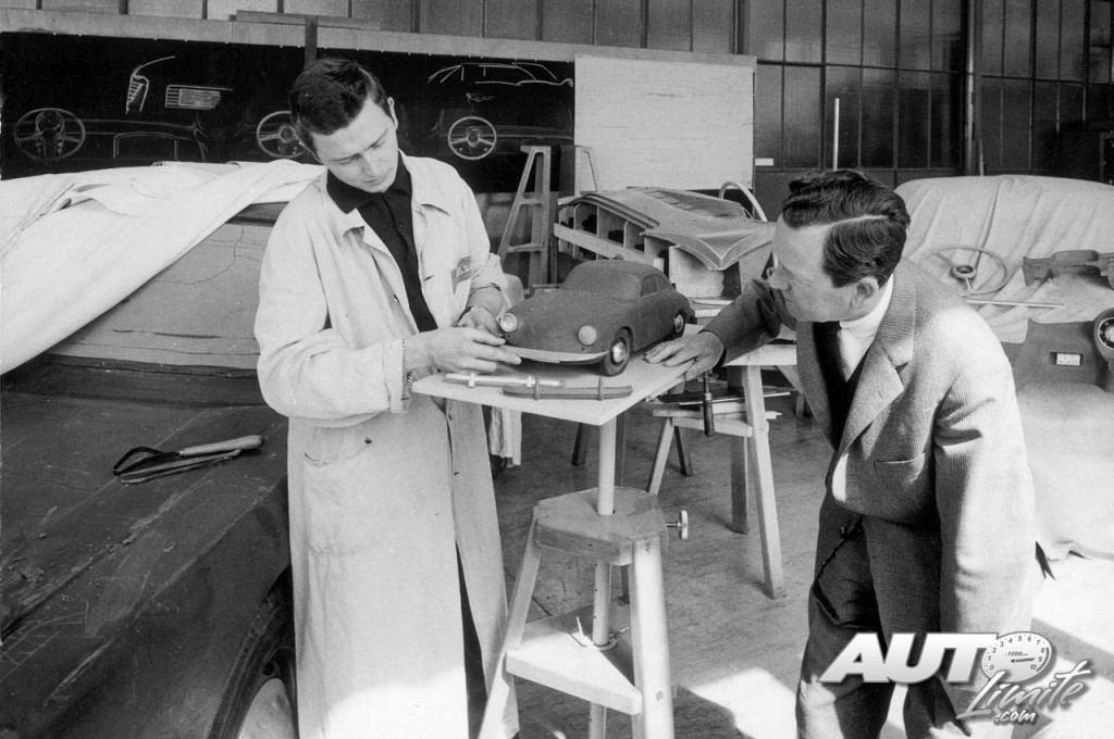 Ferry Porsche (a la derecha) junto a su hijo, Ferdinand Alexander, en el estudio de diseño de Porsche en 1959.