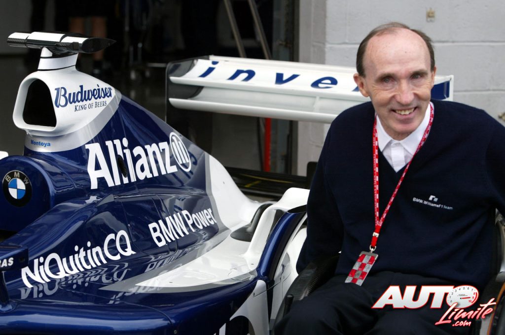 Frank Williams junto al Williams-BMW FW25 con el que corrió el equipo en la temporada 2003.