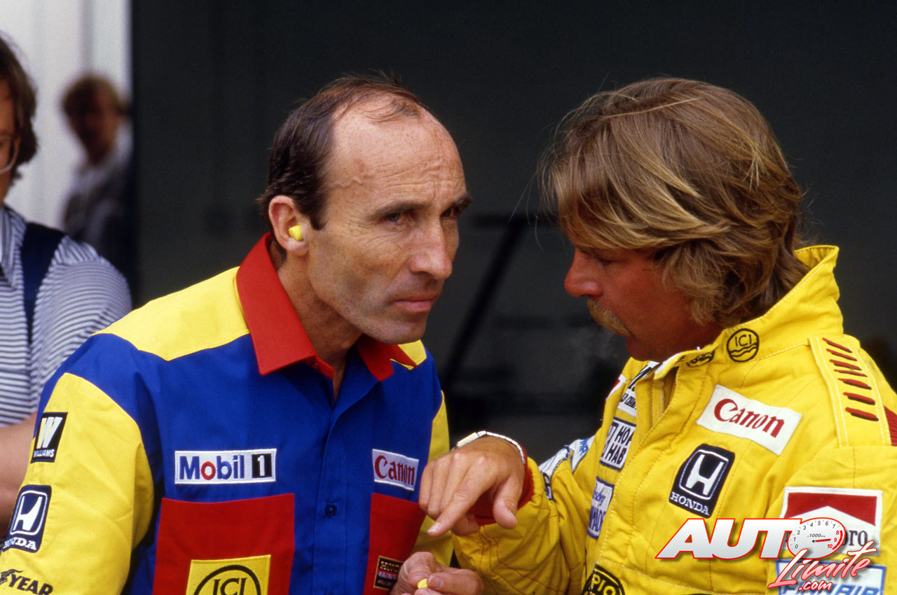Frank Williams con Keke Rosberg durante uno de los Grandes Premios de Fórmula 1 de 1984.