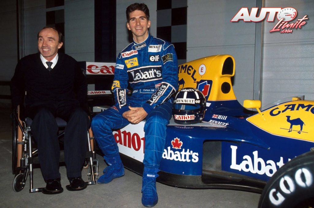 Frank Williams con Damon Hill junto al Williams-Renault FW15C de la temporada 1993.