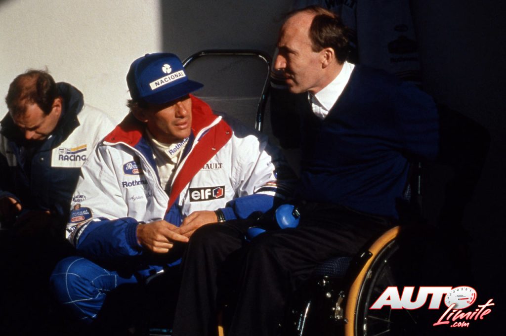 Frank Williams conversa con Ayrton Senna en la pretemporada de 1994.