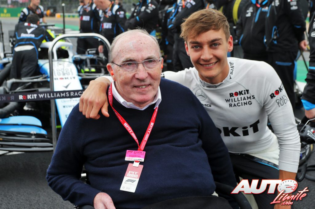 Frank Williams con George Russell junto al Williams-Mercedes FW42 en la parrilla de salida del GP de Gran Bretaña 2019.