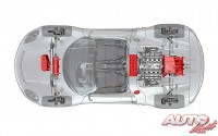 A nivel mecánico, el Porsche 918 Spyder lleva un motor de explosión V8 (situado en posición central trasera) y dos motores eléctricos (uno en cada eje), para obtener una potencia conjunta que rondará finalmente los 770 CV.
