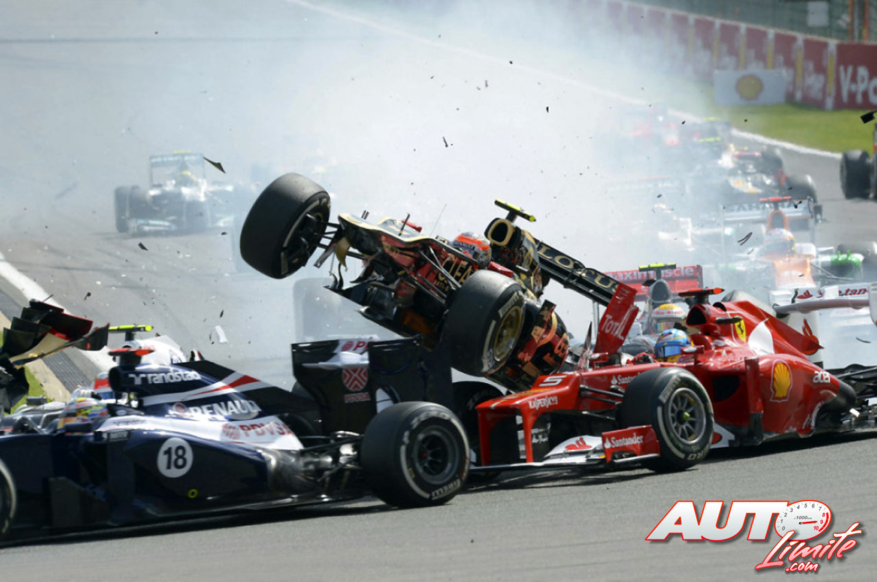 Los comisarios de la FIA han ido dejando trabajo pendiente para después de la carrera y finalmente han señalado a Grosjean como culpable único del estropicio inicial en la salida, castigándole con la exclusión del próximo G.P. de Italia y 50 mil euros de multa que parecen pocos para reparar tanta “chapa”. Maldonado también se ha llevado lo suyo para Monza: cinco puestos en la parrilla por adelantarse en la salida de Spa y otros cinco puestos más por causar una colisión con Glock en el transcurso de las primeras vueltas.