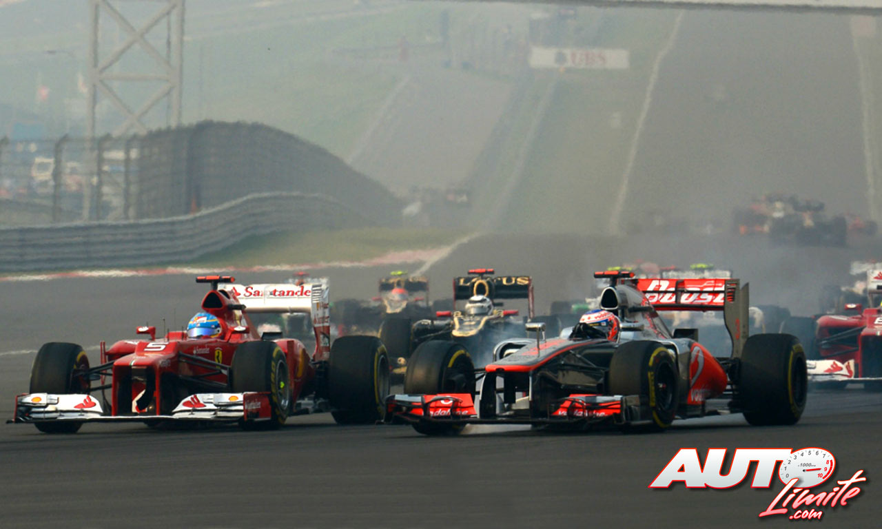 Si, al primer paso por meta, Alonso había conseguido superar a Hamilton, rebasar a Button le ocupó varios giros más. En la vuelta 24, con las gomas blandas de los de cabeza funcionando aún a ritmo de vuelta rápida, su Ferrari se colocaba a 2 segundos de Webber y acercándose. Son vueltas al límite, frenéticas, donde las décimas se ganan y pierden de forma alternativa.