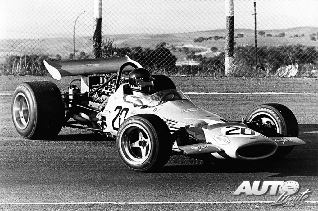 Andrea De Adamich (McLaren M7D-Alfa Romeo V8) en el circuito del Jarama, durante el Gran Premio de España de Fórmula 1 de 1970.