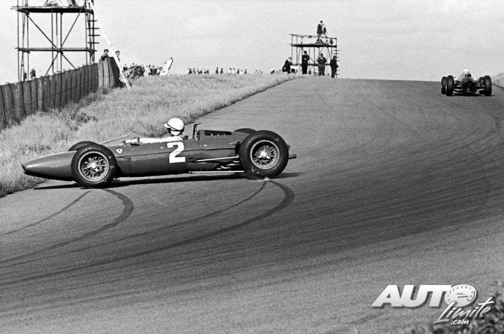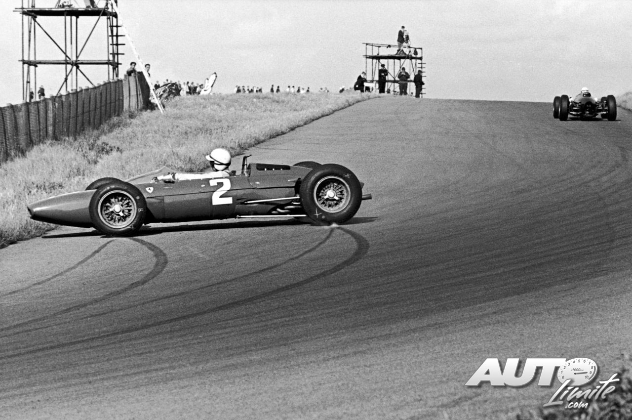 John Surtees (Ferrari 156 V6) en el circuito de Zandvoort, durante el Gran Premio de Holanda de Fórmula 1 de 1963.