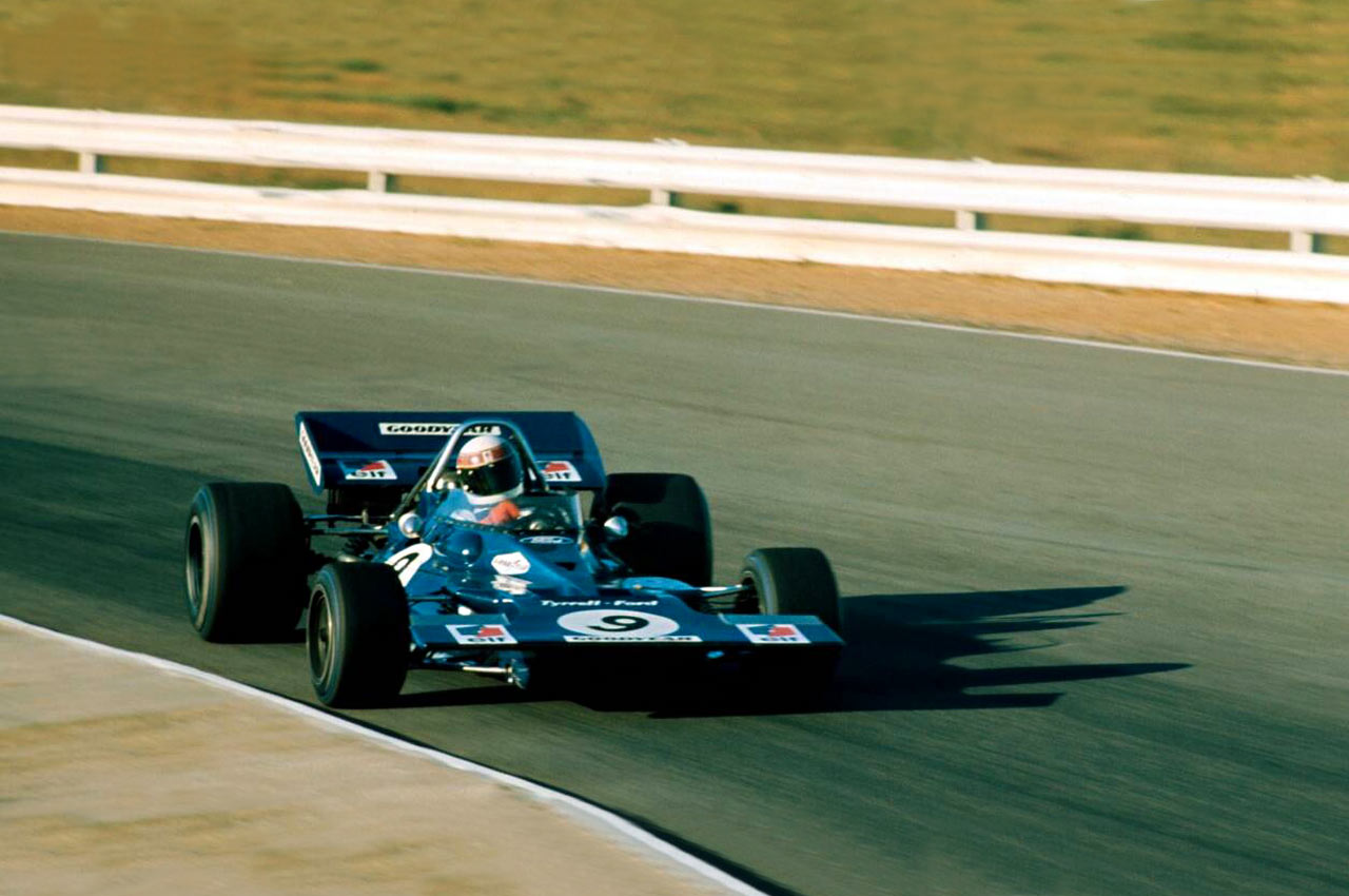 Jackie Stewart (Tyrrell 001-Ford) en el circuito de Kyalami, durante el Gran Premio de Sudáfrica de Fórmula 1 de 1971.