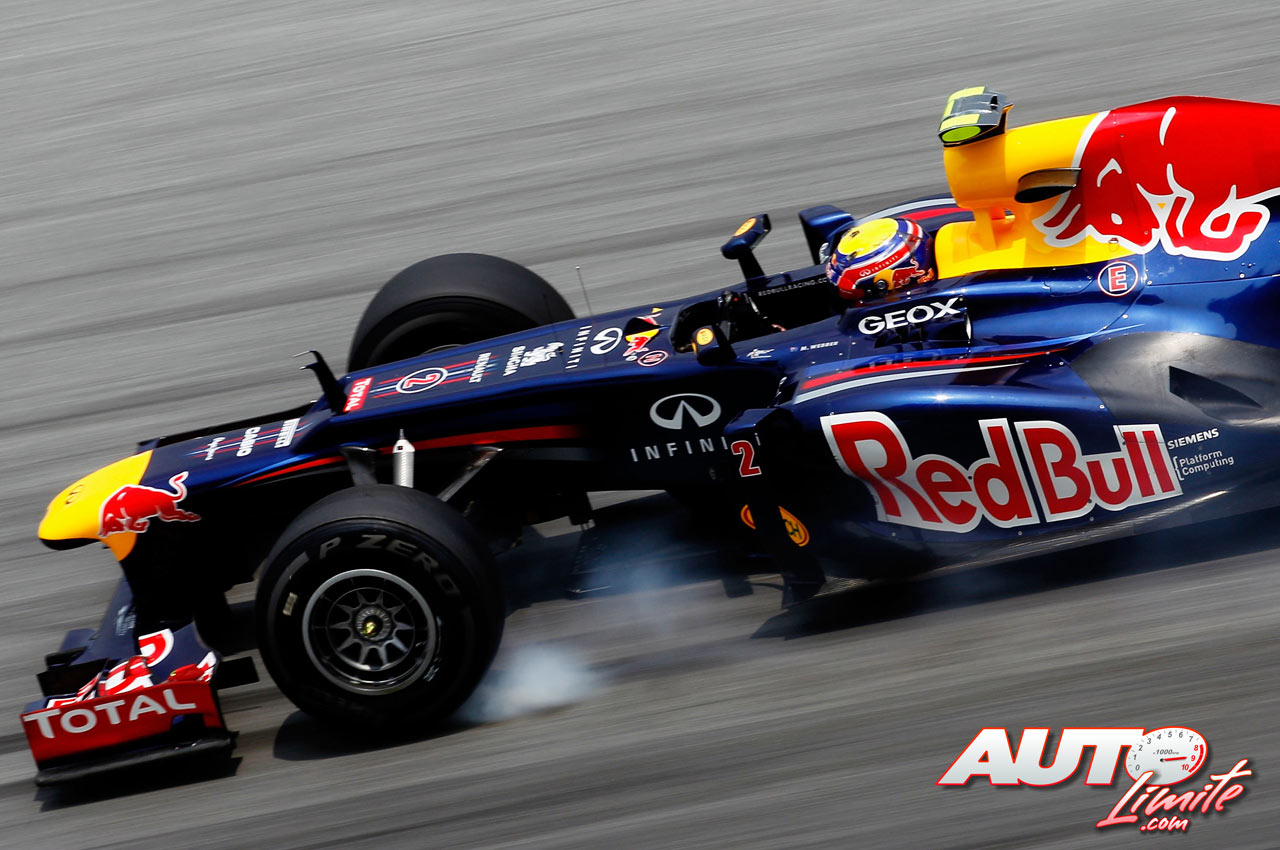 Mark Webber con Red Bull RB8 en el circuito de Sepang, durante el Gran Premio de Malasia de Fórmula 1 de 2012.