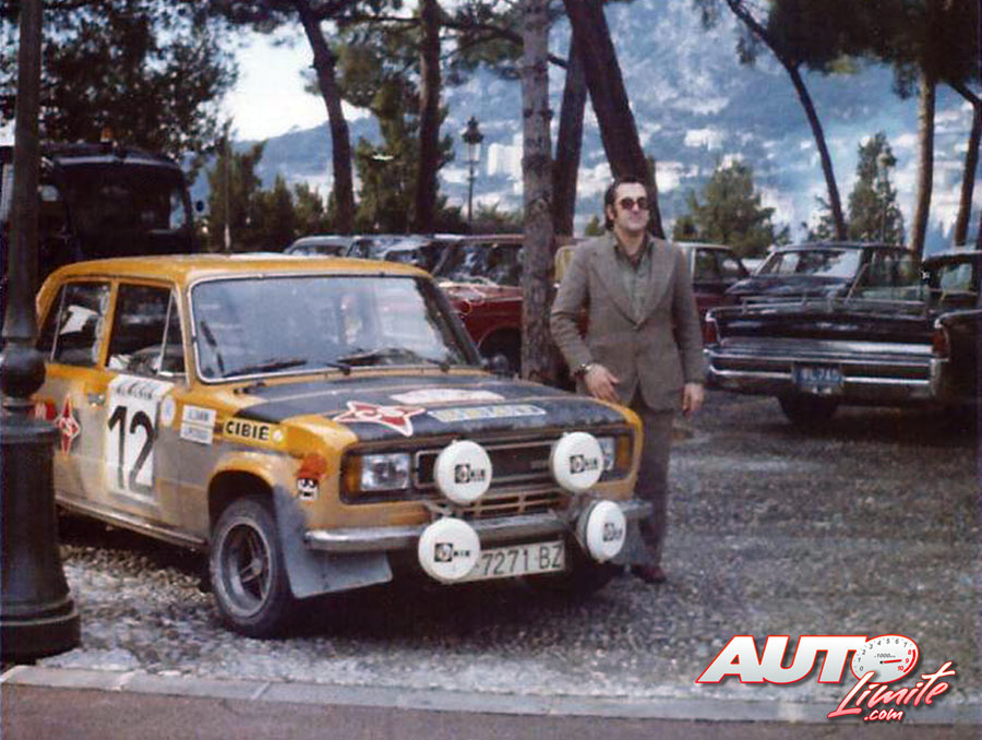 El Abuelete del M3 junto al coche de Antonio Zanini en el Rallye de Montecarlo de 1977.