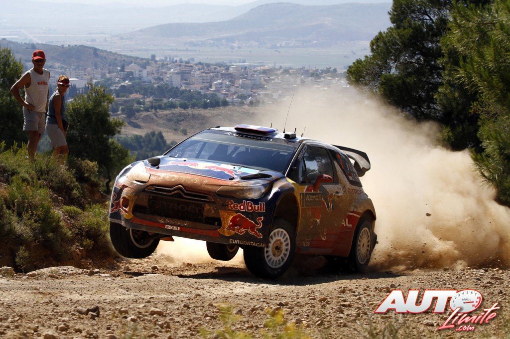 Sébastien Loeb con el Citroën DS3 WRC en el Rally Acrópolis de 2011, puntuable para el Campeonato del Mundo de Rallyes.
