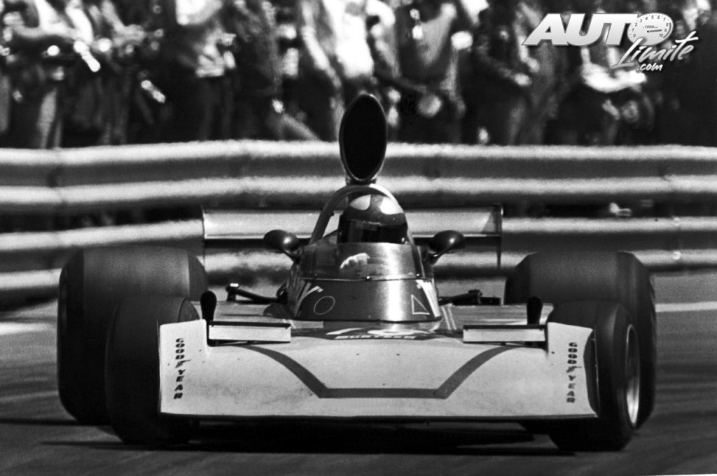 John Watson con el Surtees TS16-Ford Cosworth 3.0 V8 en el circuito de Montjuic, durante el Gran Premio de España de Fórmula 1 de 1975.