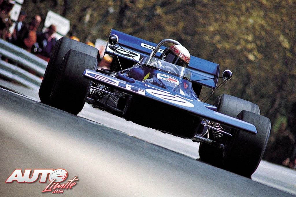 Jackie Stewart con el Tyrrell 001-Ford Cosworth 3.0 V8 en el circuito de Montjuic, durante el Gran Premio de España de Fórmula 1 de 1971.