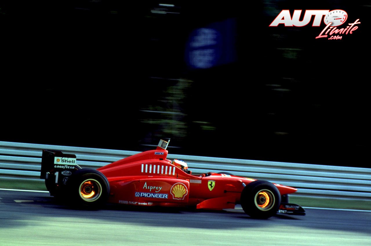 Michael Schumacher con el Ferrari F310 con motor Ferrari 046 3.0 V10 de la temporada 1996.