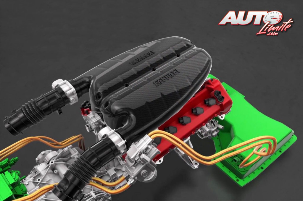 Motor V12 y conjunto de baterías (en verde) del Ferrari LaFerrari.