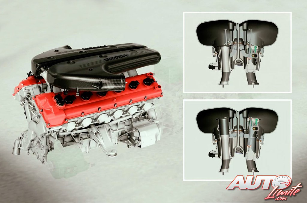 El motor V12 de Ferrari cuenta con colectores de admisión de longitud variable.