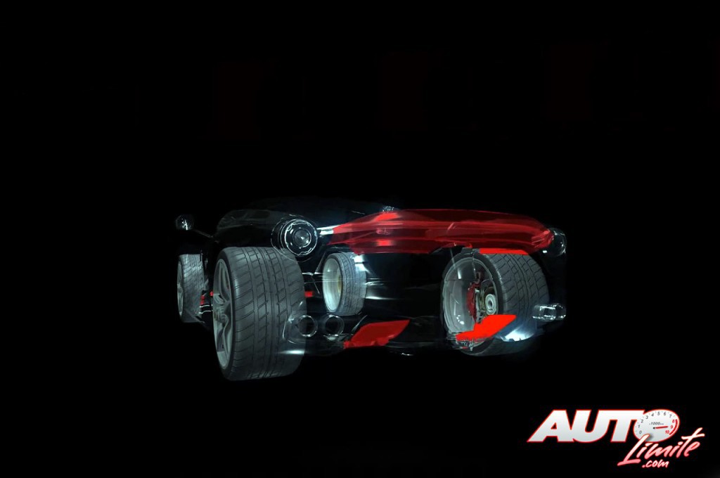El alerón trasero y el difusor trasero cuentan con elementos activos que incrementan el apoyo aerodinámico en función de las necesidades de conducción requeridas.