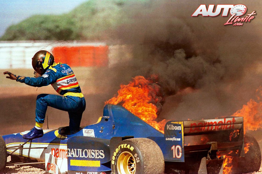 Cuando la cosa se pone caliente... mejor salir corriendo. Esto es lo que le pasó a Pedro Diniz cuando su Ligier JS43-Mugen Honda 3.0 V10 se convirtió en una bola de fuego durante el GP de Argentina de 1996, disputado en el Autódromo Oscar Alfredo Gálvez de Buenos Aires.