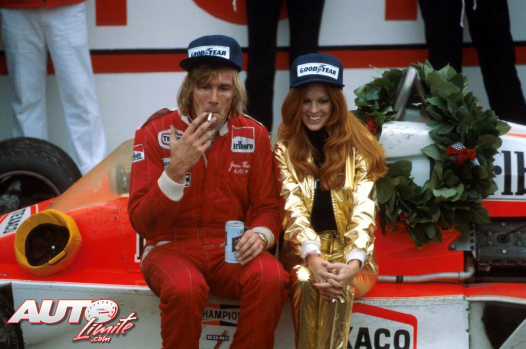 La afición que tenía James Hunt por la buena vida es de sobra conocida. El piloto británico se proclamó Campeón del Mundo de Fórmula 1 en 1976 y, tras una de sus victorias a lo largo de la temporada, que mejor forma de celebrar el triunfo que hacerlo junto a una bella mujer, mientras se bebía una cerveza y se fumaba un cigarrito, con “peluco” de oro en la muñeca a juego con el traje de la señorita.