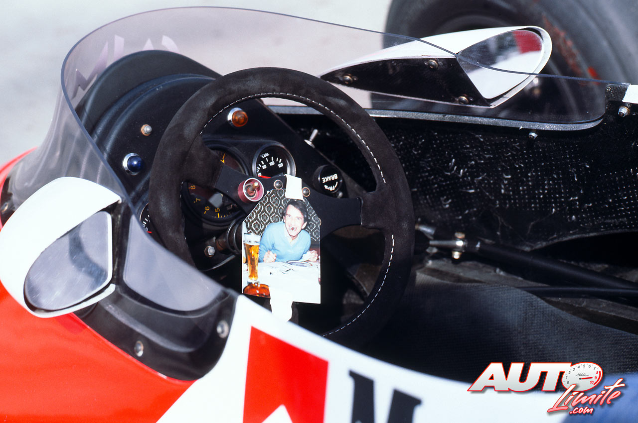 Cuando los mecánicos cambian las pastillas de freno en un coche de carreras, lo normal es que peguen un pequeño cartel recordatorio en el volante para que el piloto haga el rodaje. En este caso, los mecánicos de John Watson quisieron gastarle una broma durante el Gran Premio de EEUU de 1983, disputado en el circuito de Long Beach, dejándole una simpática foto suya en el “cockpit” de su McLaren MP4-1C.
