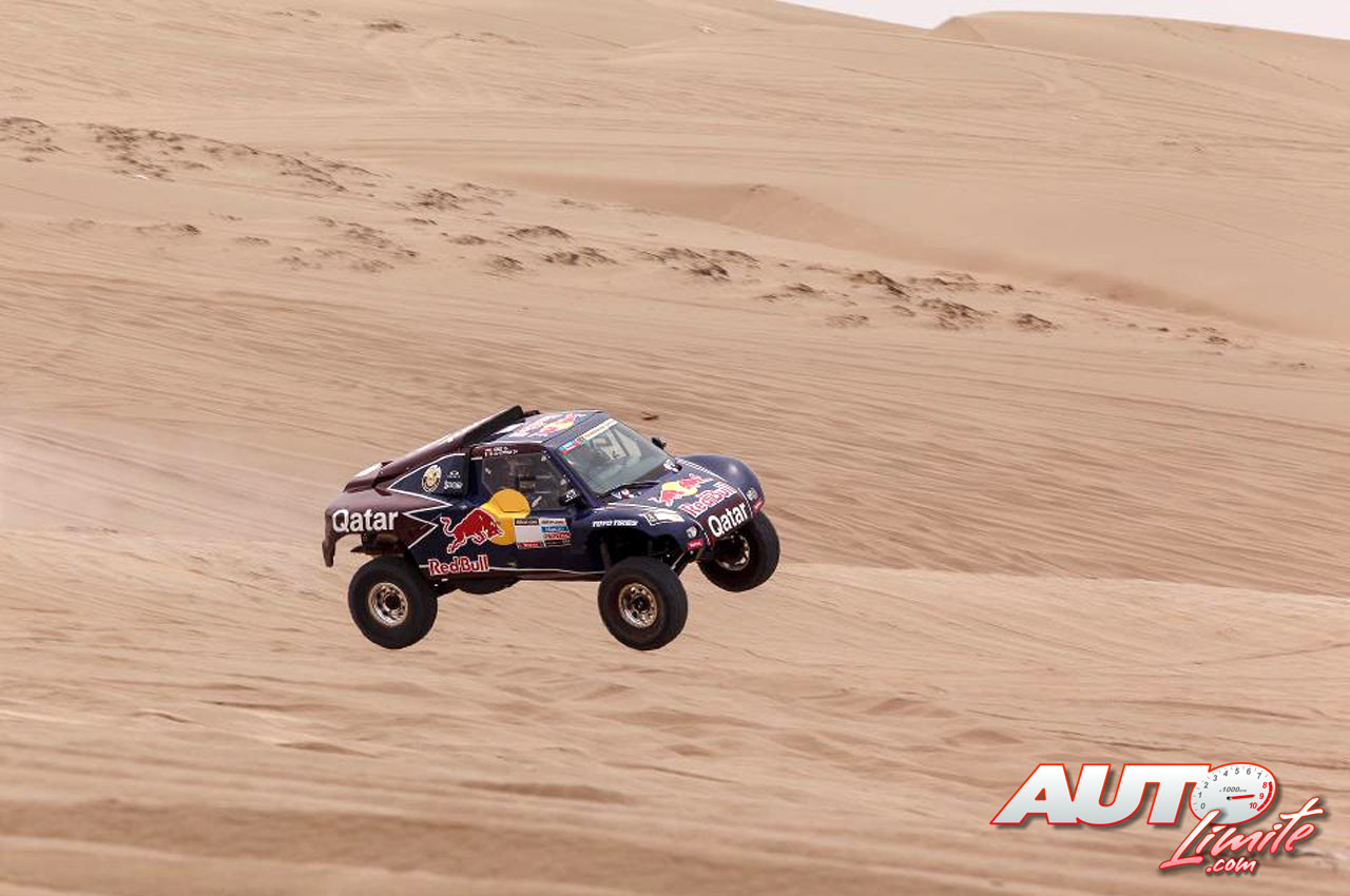 Nasser Al Attiyah con el Buggy V8 durante la prueba del Sealine Cross Country Rally 2013 disputado en Qatar.