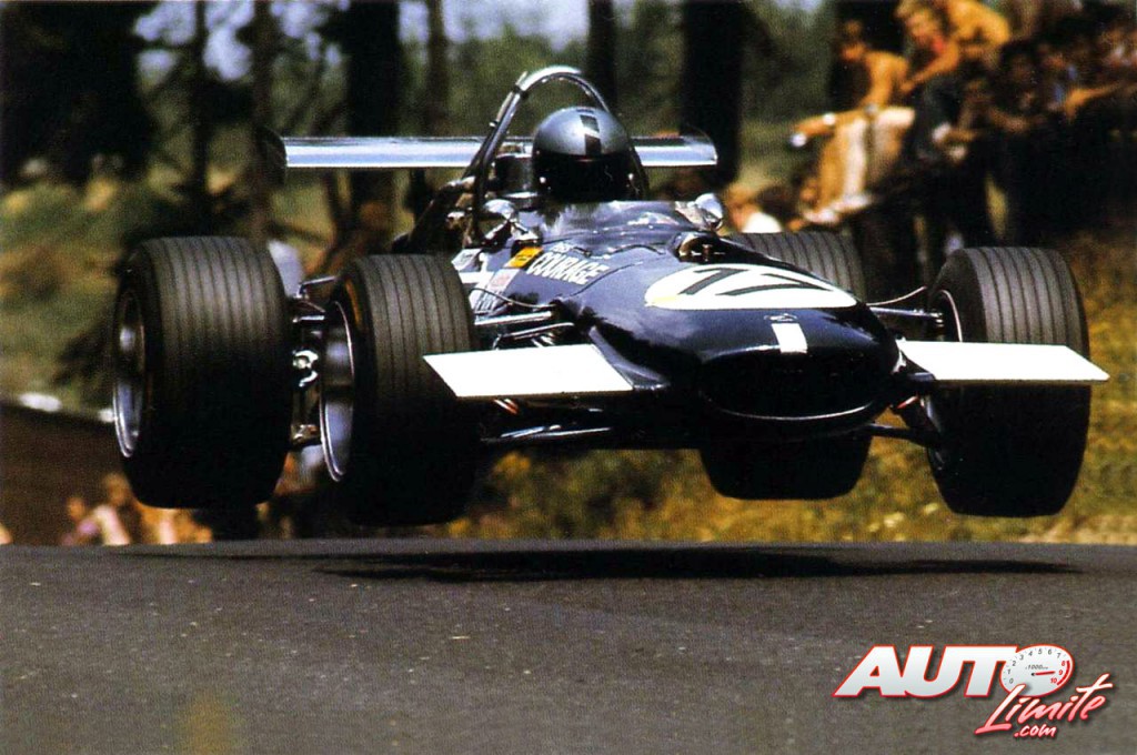 Piers Courage volando sobre el trazado de Nürburgring con el Brabham BT26 A, durante el GP de Alemania de 1969.