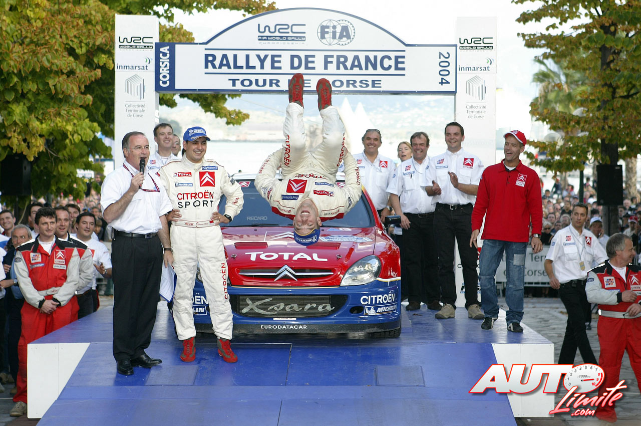 Sébastien Loeb obtuvo su primer título WRC en el Rally de Francia (Tour de Córcega) de 2004. El piloto francés había sido gimnasta durante su juventud y deleitó a los asistentes con una espectacular pirueta de celebración.