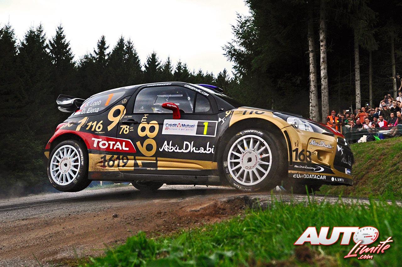 Sébastien Loeb con el Citroën DS3 WRC en el Rally de Francia 2013, disputado por la zona de Alsacia. El coche llevaba una decoración especial en conmemoración a los récord obtenidos por el piloto francés en su exitosa trayectoria en el Mundial de Rallyes "WRC". Este ha sido el último rally disputado por Loeb y tuvo que abandonar al sufrir una salida de carretera en la última etapa, mientras disputaba los primeros puestos.