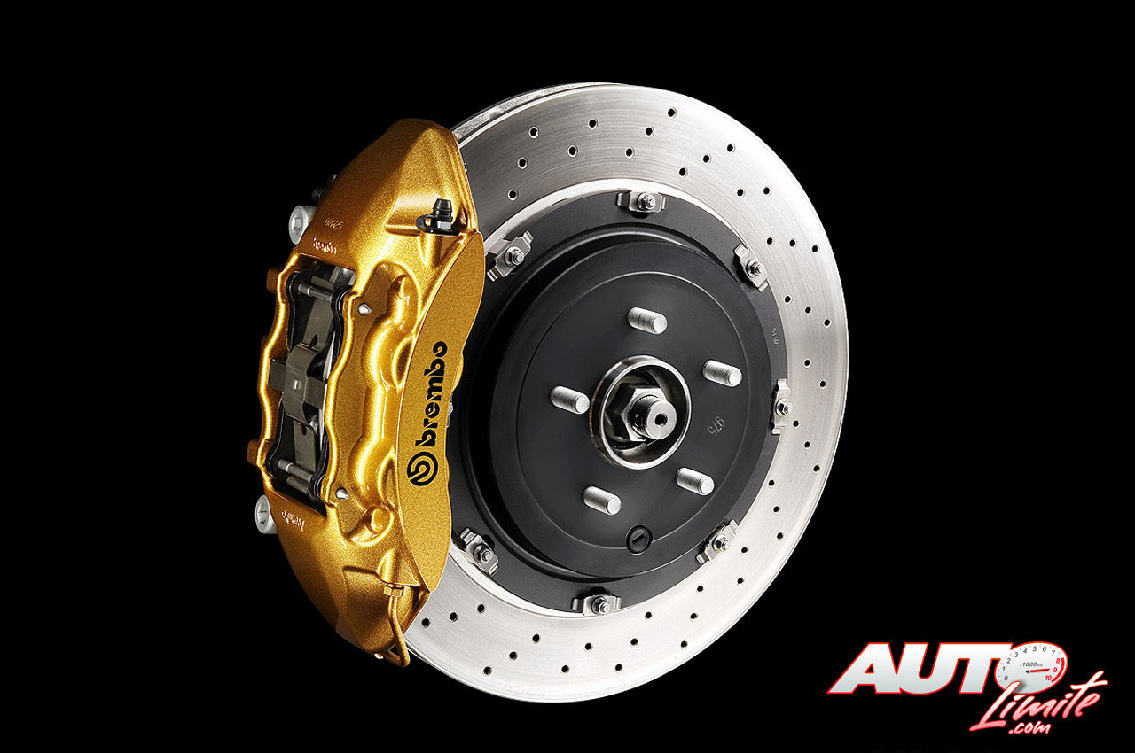 Disco trasero ventilado y perforado, de construcción flotante, con pinza monobloque de aluminio de cuatro pistones.