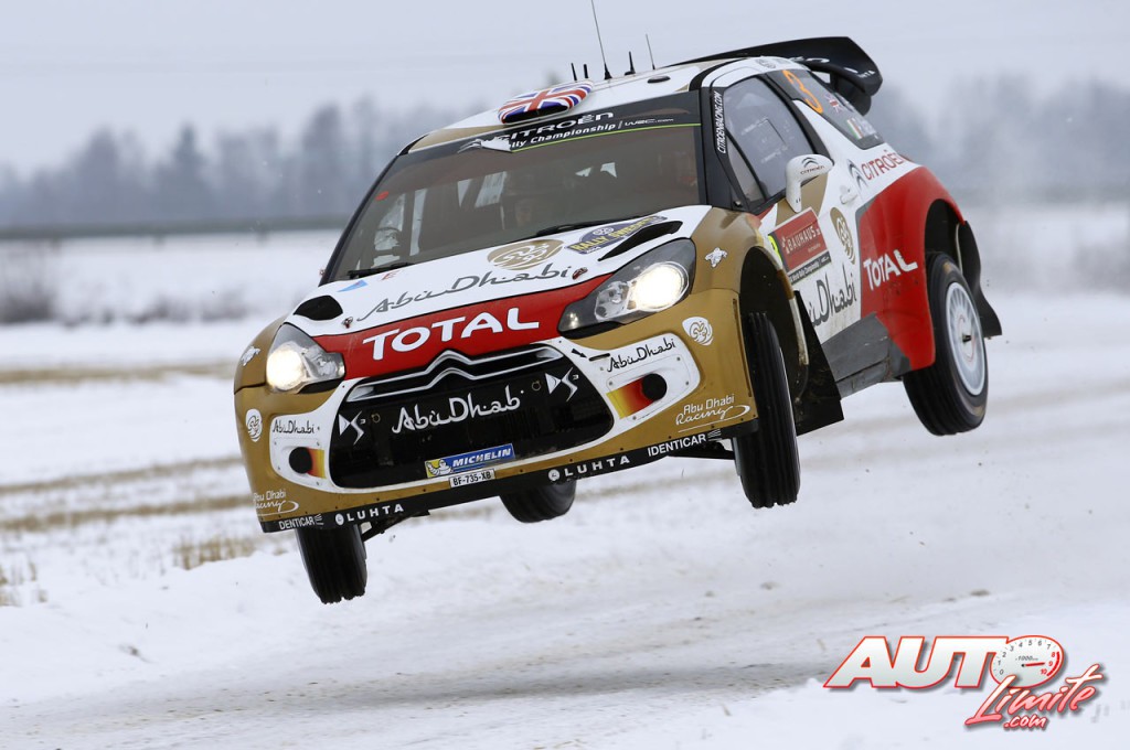 Kris Meeke con el Citroën DS3 WRC durante el Rally de Suecia de 2014, puntuable para el Campeonato del Mundo de Rallyes WRC.