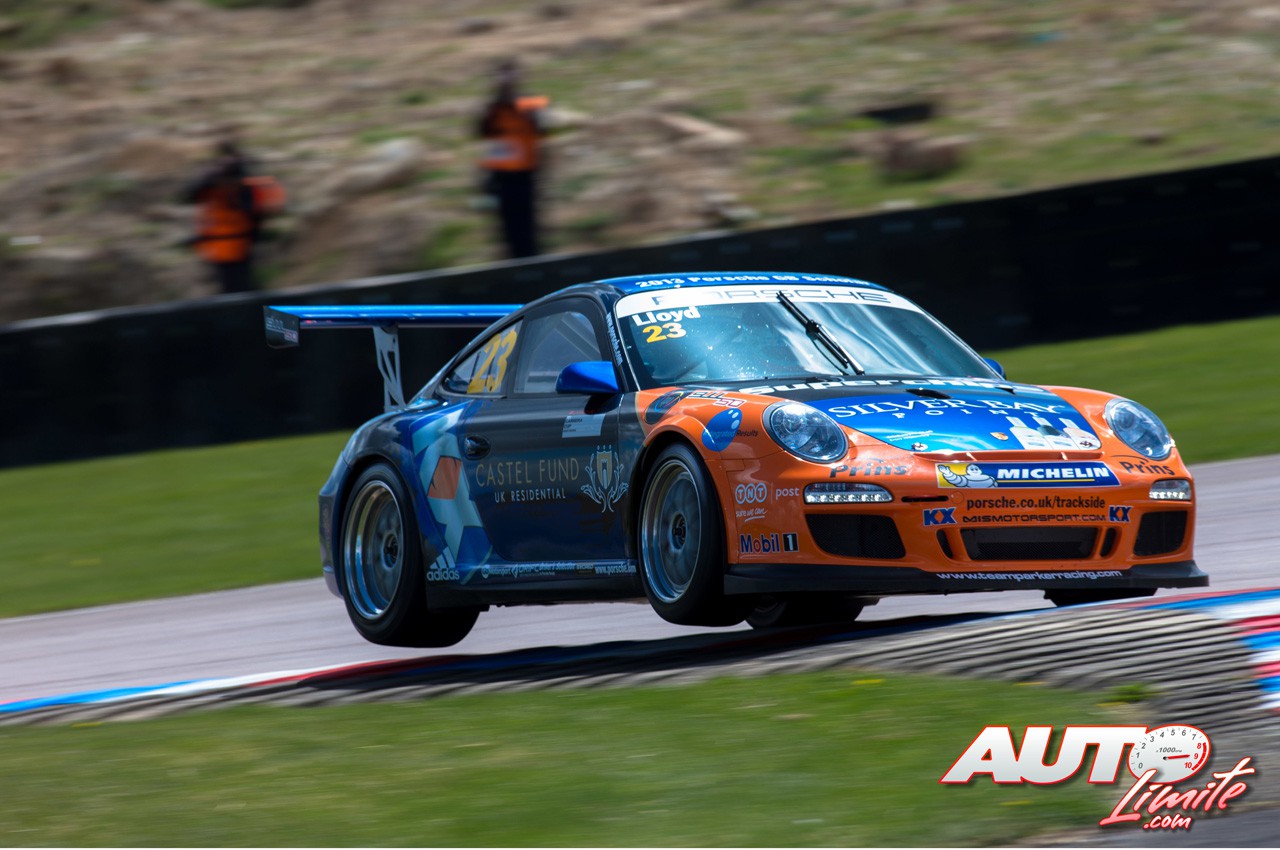 Dan Lloyd con el Porsche 911 GT3 Cup durante la prueba disputada en el circuito de Thruxton, puntuable para la Porsche Carrera Cup de Gran Bretaña 2013.