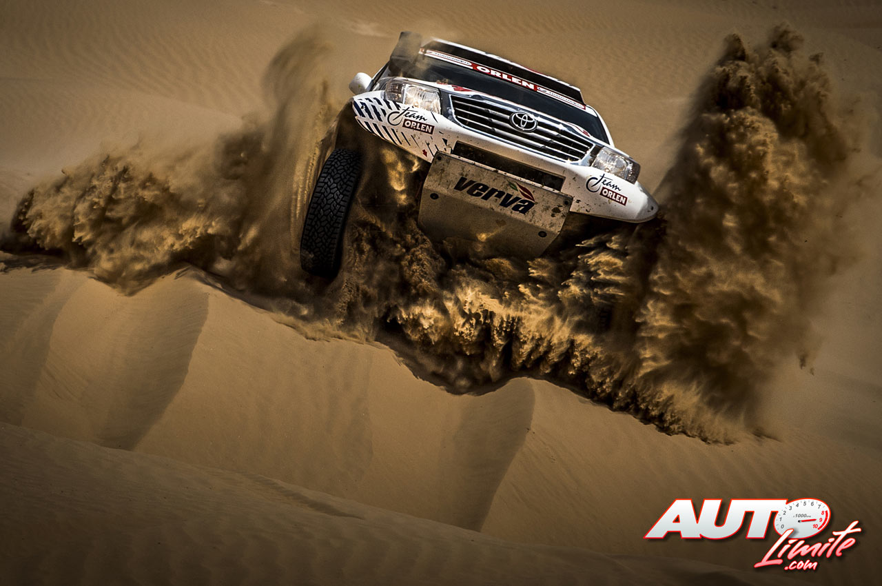 Marek Dabrowski con el Toyota Hilux durante una etapa del Rally Ruta de la Seda (Silk Way Rally 2013).