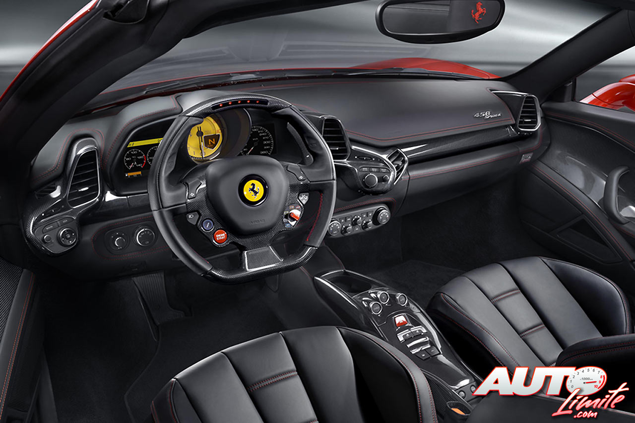El nivel de acabo y equipamiento del F 458 Spider es ejemplar, con materiales de excelente tacto en todos los guarnecidos.