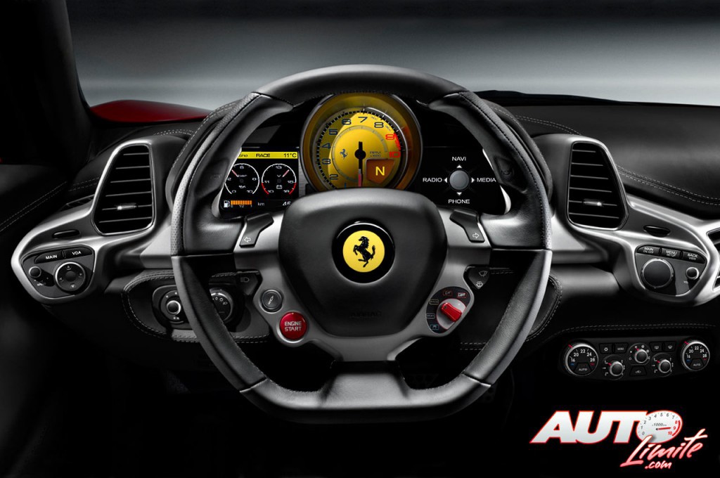 El puesto de conducción sitúa todos los mandos al alcance del "piloto". El volante integra todos los mandos de control de luces, intermitentes y limpiaparabrisas, además del botón de arranque y el "manettino" para seleccionar los programas de funcionamiento dinámico. Las levas del cambio secuencial automátizado se encuentran fijas en la columna de dirección. Esto permite su accionamiento, incluso, con el volante girado. La instrumentación es abundante en información, lleva un cuentarrevoluciones analógico en la parte central y unas pantallas multifunción en los lados.