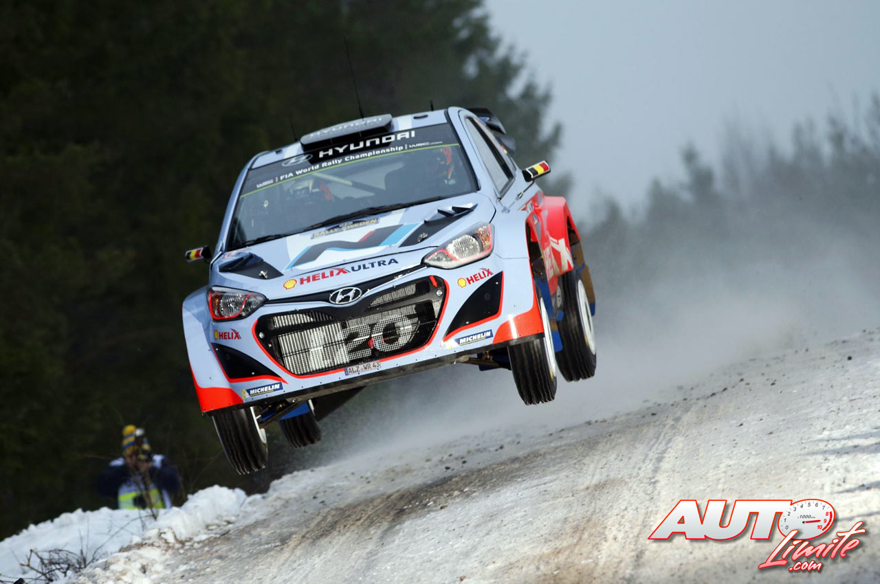 Thierry Neuville con el Hyundai i20 WRC en el Rally de Suecia 2014, puntuable para el Campeonato del Mundo de Rallyes "WRC".
