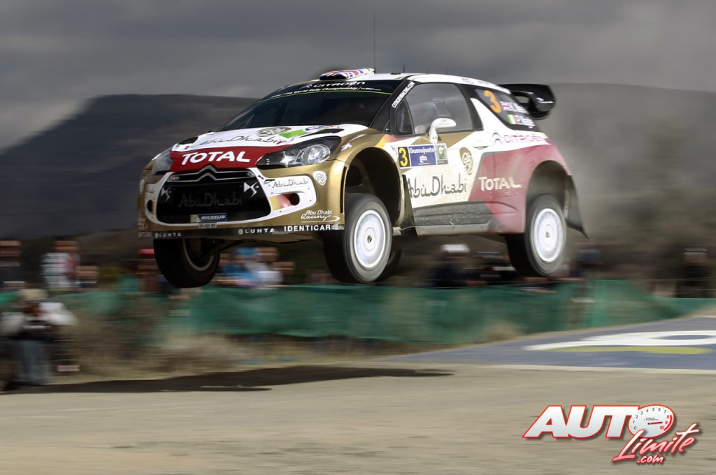 Kris Meeke con el Citroën DS3 WRC en el Rally de México 2014, puntuable para el Campeonato del Mundo de Rallyes "WRC".