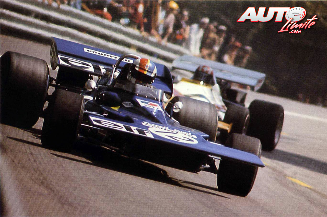 Francois Cevert en pleno contravolante con su Tyrrell-Ford 002 3.0 V8 durante el GP de España de 1971, disputado en el circuito urbano de Montjuic.