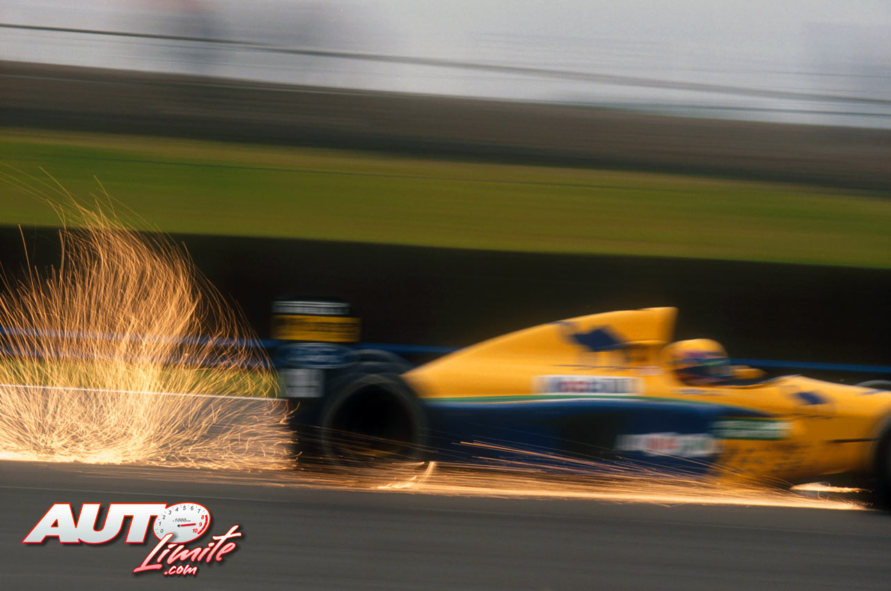 Roberto Moreno crea su particular estrella fugaz con el Benetton-Ford B191 3.5 V8 durante el GP de Gran Bretaña de 1991, disputado en el circuito de Silverstone.