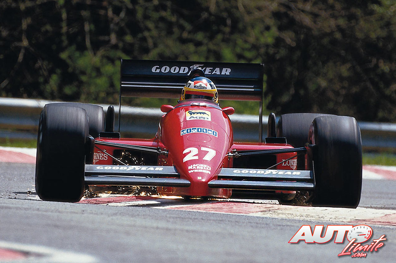 Michele Alboreto atacando a fondo una chicane con su Ferrari F187 1.5 V6 Turbo, durante una prueba del Campeonato del Mundo de Fórmula 1 de 1987.